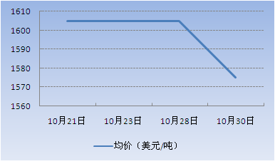 中国铁合金网讯:根据最新的MB数据,截止10月21日,国内电解锰主流报价持续下行时,欧洲电解锰价格平稳运行一段时间后,略有下调,欧洲第一大港口鹿特丹99.7%电解锰片用户仓交价格为1580(跌20)-1630(跌30)。 |