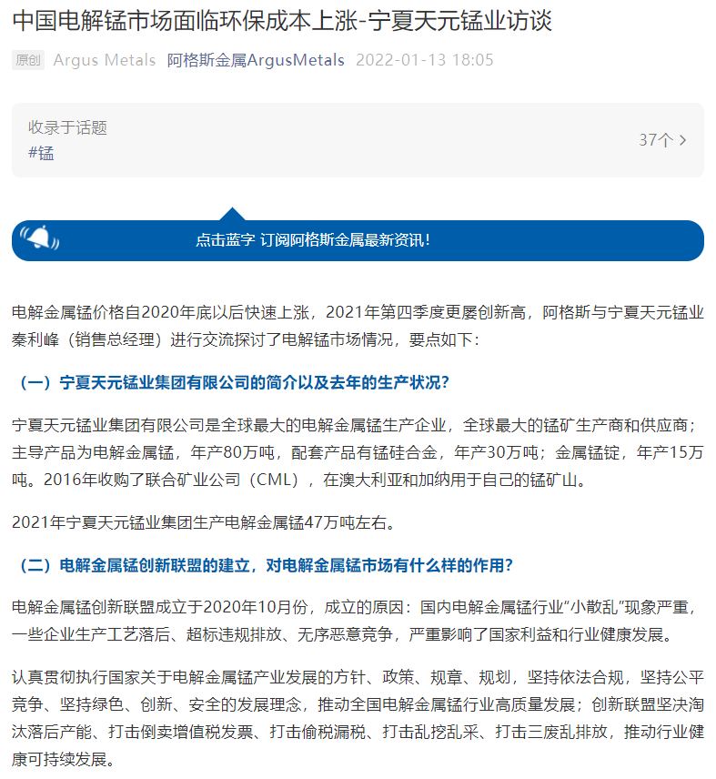 中国电解锰市场面临环保成本上涨-宁夏天元锰业访谈