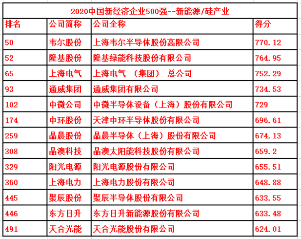 2020中国新经济企业500强-光伏产业