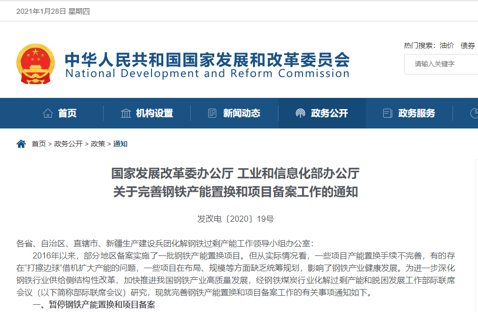 1月26日,在国务院新闻办召开的新闻发布会上,工业和信息化部新闻发言人、运行监测协调局局长黄利斌表示,钢铁压减产量是落实习近平总书记提出的我国碳达峰、碳中和目标任务的重要举措。工业和信息化部与发展改革委等相关部门正在研究制定新的产能置换办法和项目备案的指导意见。... |