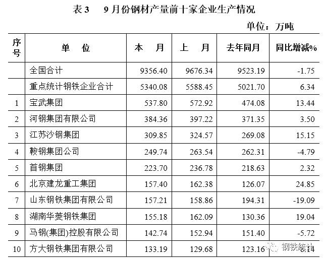 2017年9月,全国生产粗钢7182.68万吨、生铁5959.95万吨、钢材9356.40万吨,其中纳入中国钢铁工业协会月报统计的重点统计钢铁企业共生产粗钢5586.44万吨、生铁5187.14万吨、钢材5340.08万吨,分别占全国粗钢产量的77.78%、全国生铁产量的87.03%、全国钢材产量的57.07%。 |