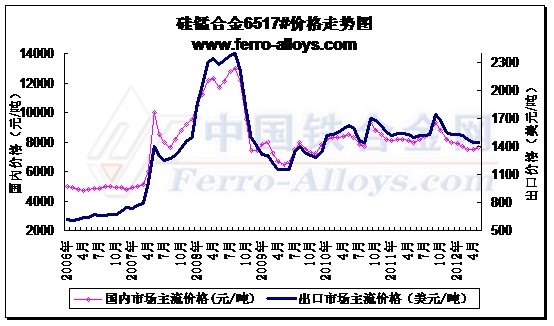 锰合金市场低位盘整 后期市场难言乐观 锰合金市场整体维持稳中趋弱态势,由于担心下游钢铁产量因国内经济增速放缓而释放有限会对后期锰合金市场再度带来压制,合金企业对后市多持谨慎乐观态度,而小企业主动减产或停产意愿也明显增强。 |