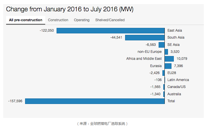 著名的煤炭研究网络 CoalSwarm 下“全球燃煤电厂追踪系统”(Global Coal PlantTracker)9月7日发布报告指出,得益于亚洲地区的政策转变,2016年上半年全球在建煤电产能出现大幅下降。 |