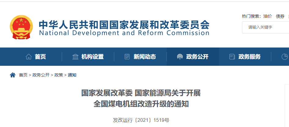 国家发展改革委 国家能源局关于开展 全国煤电机组改造升级的通知