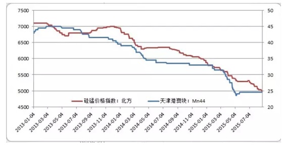 截止2015年8月,由于硅锰价格持续的下降,使得硅锰整个行业产生了历史性的颠覆,不仅产业北移,而且中小企业陆续关停、转产、合并,据本网统计,全国在开工实力企业不足百家,但硅锰行业仍面临严重的供大于求的局面,痛苦而漫长的整合能否拯救硅锰行业,只能靠时间来解答。