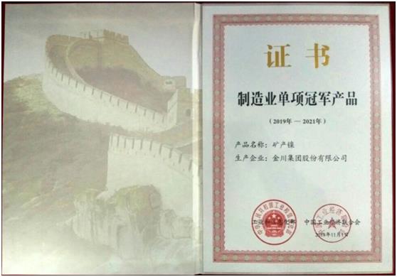 【中国铁合金网讯】12月18日,工业和信息化部、中国工业经济联合会在北京组织召开了制造业单项冠军经验交流会,金川集团公司生产的“矿产镍”被评定为“制造业单项冠军产品”。镍冶炼厂代表金川集团公司领取“制造业单项冠军产品”证书并作经验交流发言。