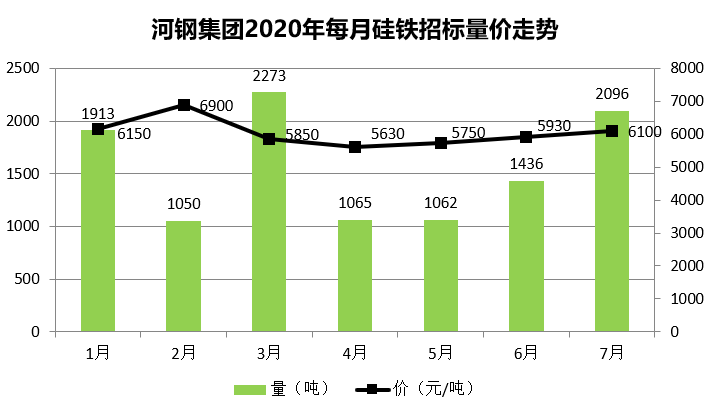 [导读]河钢集团2020年每月硅铁招标量价走势