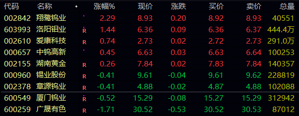 截止本周五收盘,钨上市公司涨多跌少,具体为:翔鹭钨业涨超2%,洛阳钼业涨超1%,爱康科技涨近1%,中钨高新、湖南黄金涨幅不足1%,锡业股份、章源钨业跌幅不足1%,厦门钨业跌近1%,广晟有色跌近2%。