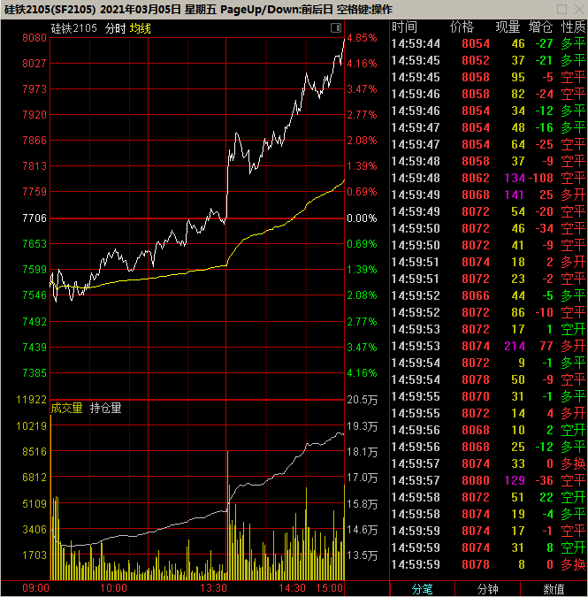 中国铁合金网讯:市场消息,包头供电局口头通知企业暂停产1个月,预计涉及当地硅铁企业13家,涉及产能32.35万吨,预估涉及月产量2.44万吨,对市场情绪带来相当程度的影响,今日(3月5日)硅铁期货盘面再次大涨,涨幅4.83%,收盘价8078。