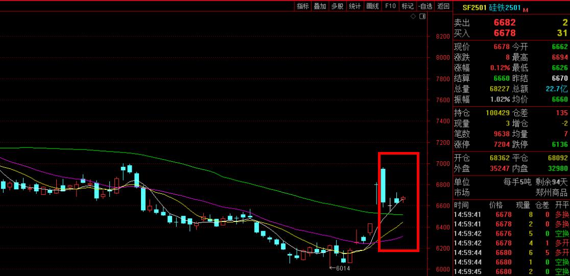 10月15日硅铁期货盘面上涨0.21% 收盘6670