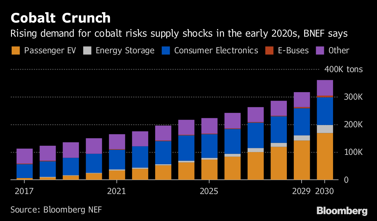 While cobalt prices have backtracked in 2018 as carmakers such as Tesla Inc. try to reduce the amount of the metal they use, they are still more than double the levels of just two years ago. Demand is set to remain strong for the next five to 10 years, said George Heppel, senior cobalt analyst at CRU Group.